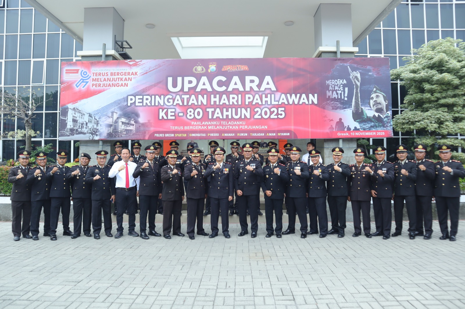 Secara terpisah, Kapolres Gresik AKBP Rovan Richard Mahenu menyampaikan bahwa Hari Pahlawan menjadi momentum refleksi bagi jajaran kepolisian untuk memperkuat nilai patriotisme dan semangat pengabdian.