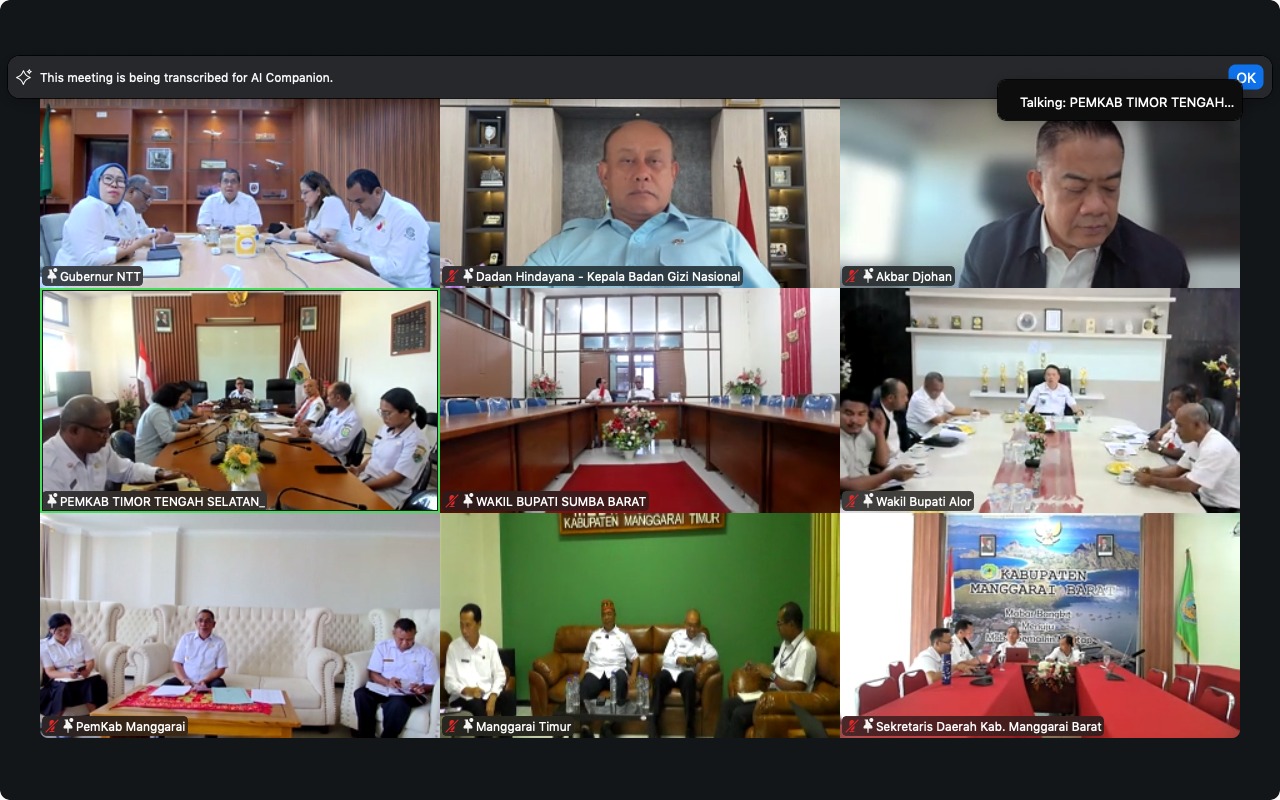 Selain Gubernur NTT, rapat yang digelar secara daring via Zoom pada Rabu (22/10/2025) ini turut dihadiri pula oleh Kepala Badan Gizi Nasional, Dadan Hindayana, Direktur Utama PT Krakatau Steel (Persero), Akbar Djohan, serta Bupati / Wakil Bupati / perwakilan dari masing-masing kabupaten/kota se-NTT.