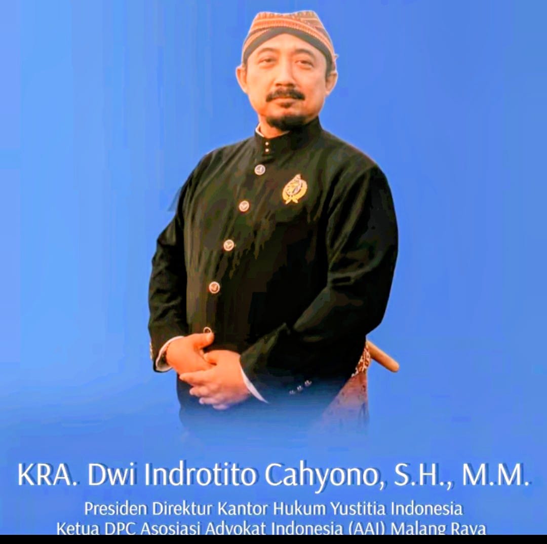 Salah satu tokoh yang turut menyampaikan belasungkawa adalah KRA Dwi Indrotito Cahyono, S.H., M.M., Presiden Direktur Kantor Hukum Yustitia Indonesia sekaligus Ketua DPC Asosiasi Advokat Indonesia (AAI) Malang Raya.