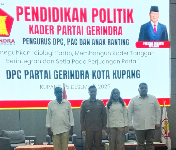 “Partai Gerakan Indonesia Raya (Gerindra) punya peran nyata dalam pembangunan di kota Kupang , Terbukti capaian kemajuan Kota Kupang sebagai salah satu kota dengan perencanaan pembangunan terbaik oleh Bappenas. Hal itu disampaikan oleh Walikota Kupang, dr. Christian Widodo, dalam sambutannya saat membuka kegiatan Pendidikan Politik Kader Partai Gerindra di hotel harper Kupang senin (15/12/2025)